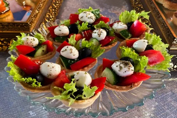 Помидоры, Огурцы, Перец болгарский, Айсберг, Маслины, Лук красный, Масло оливковое, Соль, Перец черный молотый, Сыр Фетакса